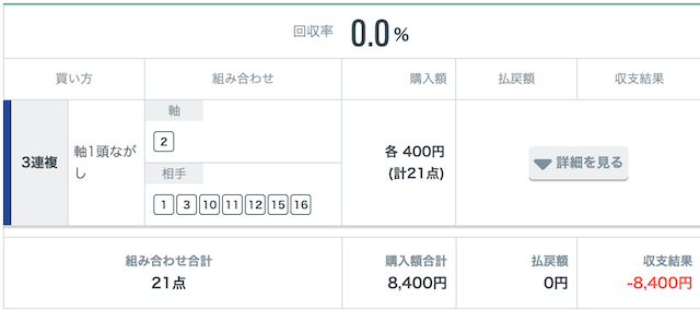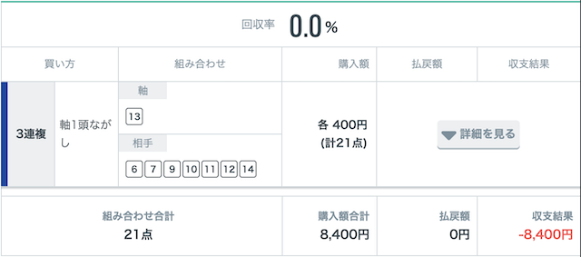 このように、AI予想家が推奨する買い目を確認することが可能です。