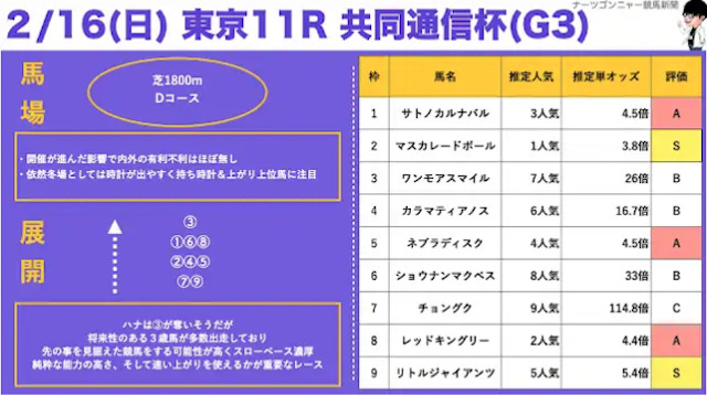 馬場状況・コース傾向・枠番・脚質適正などを考慮したナーツゴンニャー中井さん独自の見解が記載されているので、従来の全頭診断よりも専門的な情報を見ることができます。