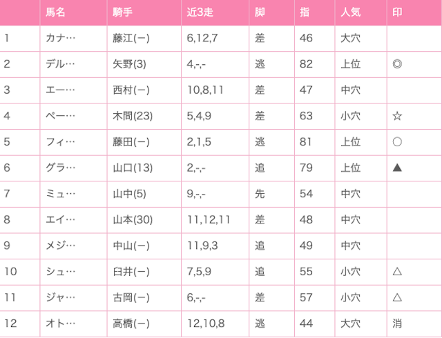 まさに「過大評価×低配当」といった条件なので、見送っても問題ないレースです。