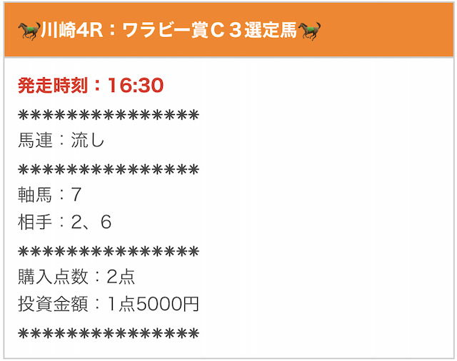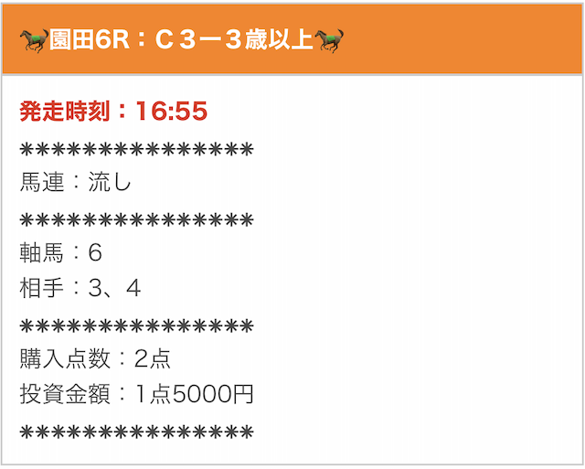 | 有料予想 | ・購入した全戦績と総評 ・過去一番のベストBUYプラン ・有料予想のラインナップ |