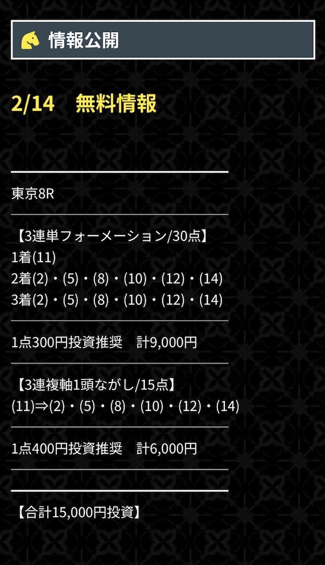 無料予想では検証中に高配当的中を連発し、とても無料とは思えないほどの実力がありました。