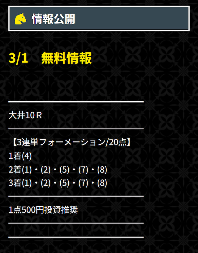 - 2025.03.29無料予想で1撃約10万円の払い戻し獲得!