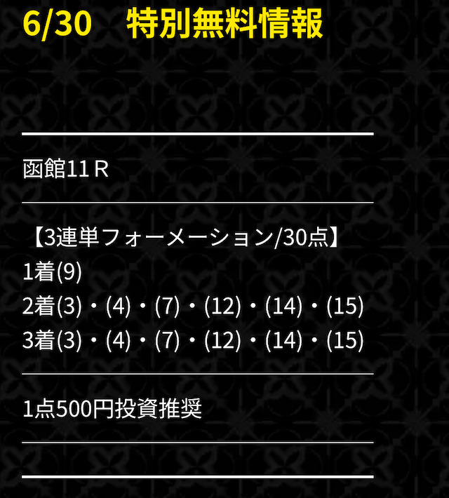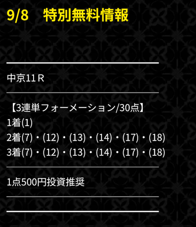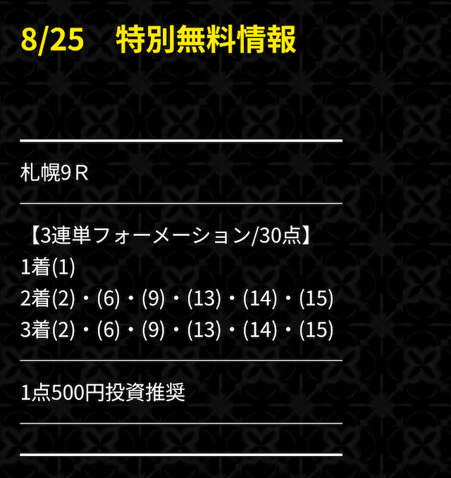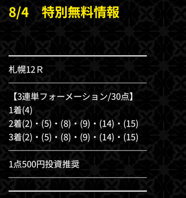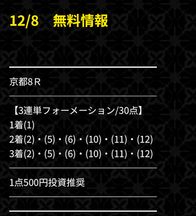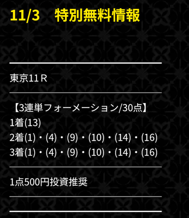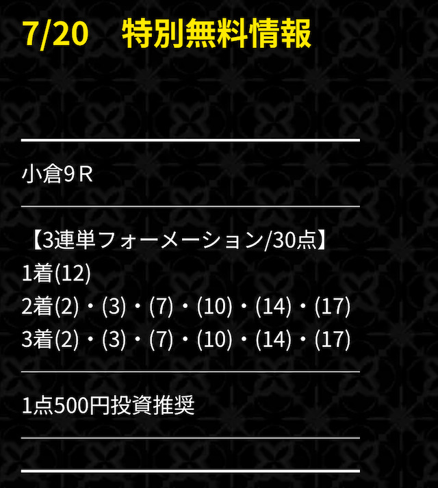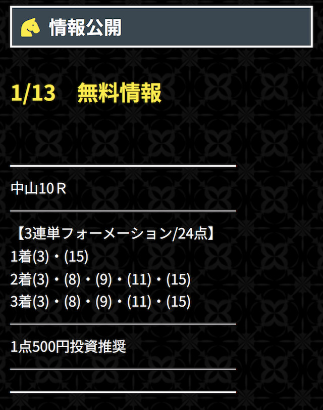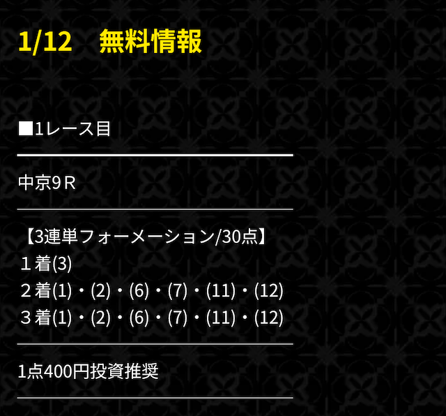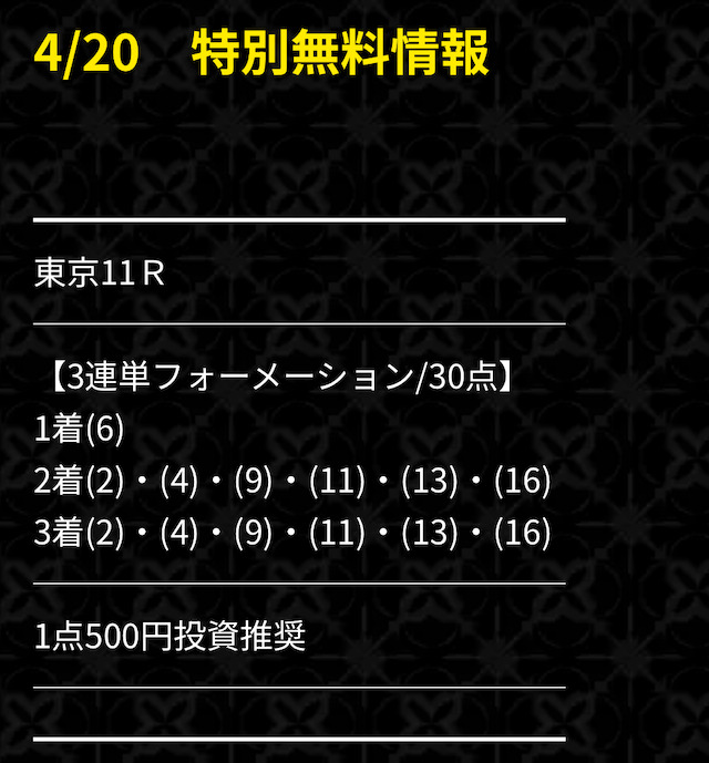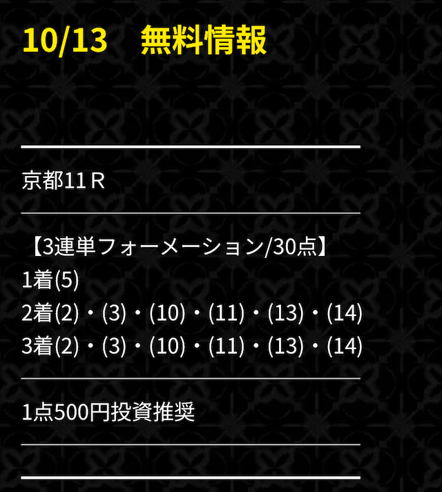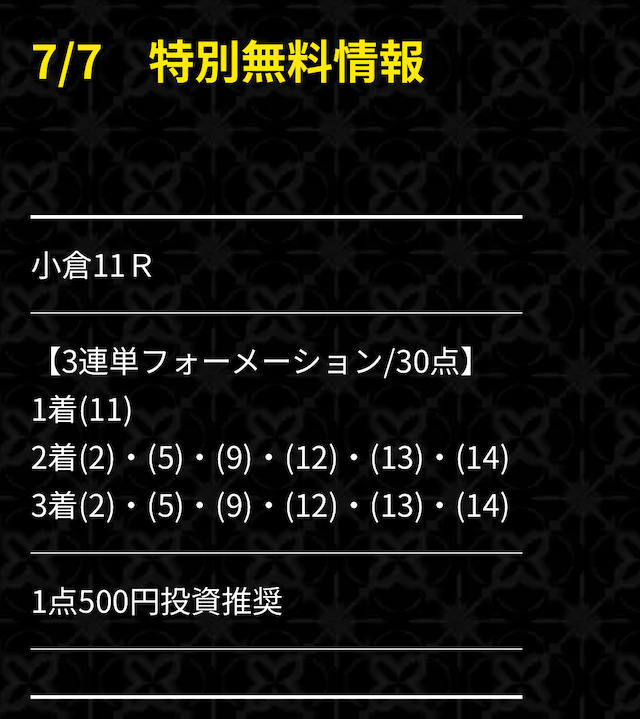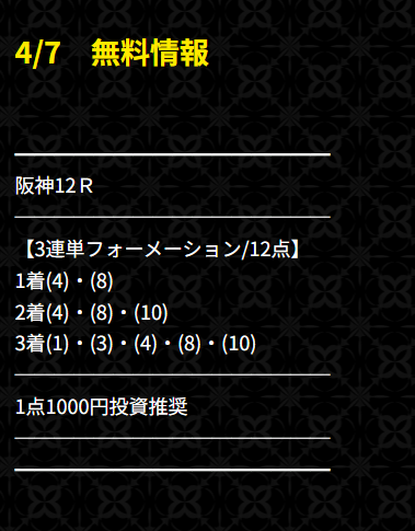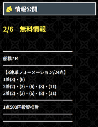 無料予想では検証中に高配当的中を連発し、とても無料とは思えないほどの実力がありました。