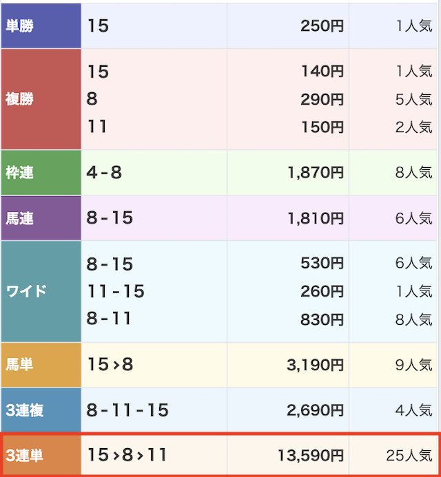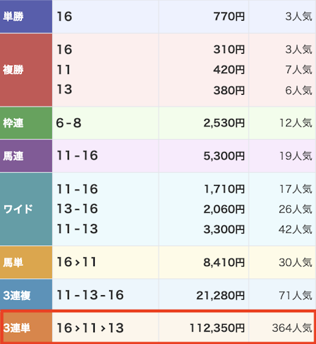 決着は1人気→5人気→2人気と、やや堅めの決着ながらも万馬券となりました。