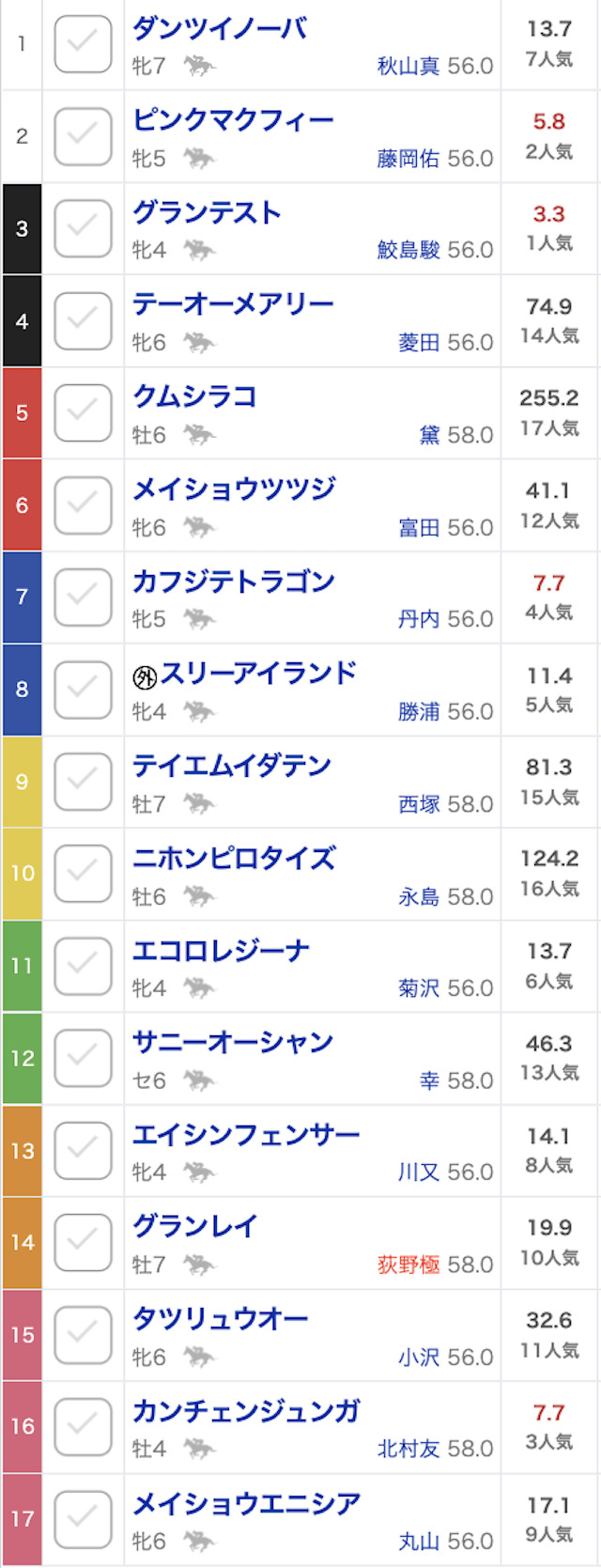 ⑪タマモダイジョッキ | 2番人気 | 3.3倍 |