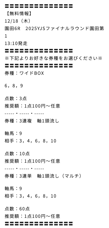 - 2025.11.01無料予想で70,500円の払い戻し獲得!