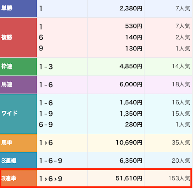 ただ本レースはオッズ差が割と差がある状態で、200倍前後ついている①・②は切りたくなるレベルです。