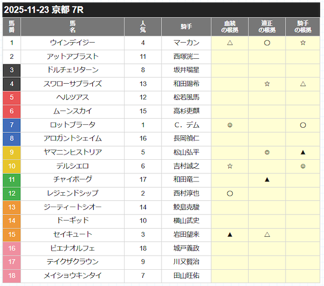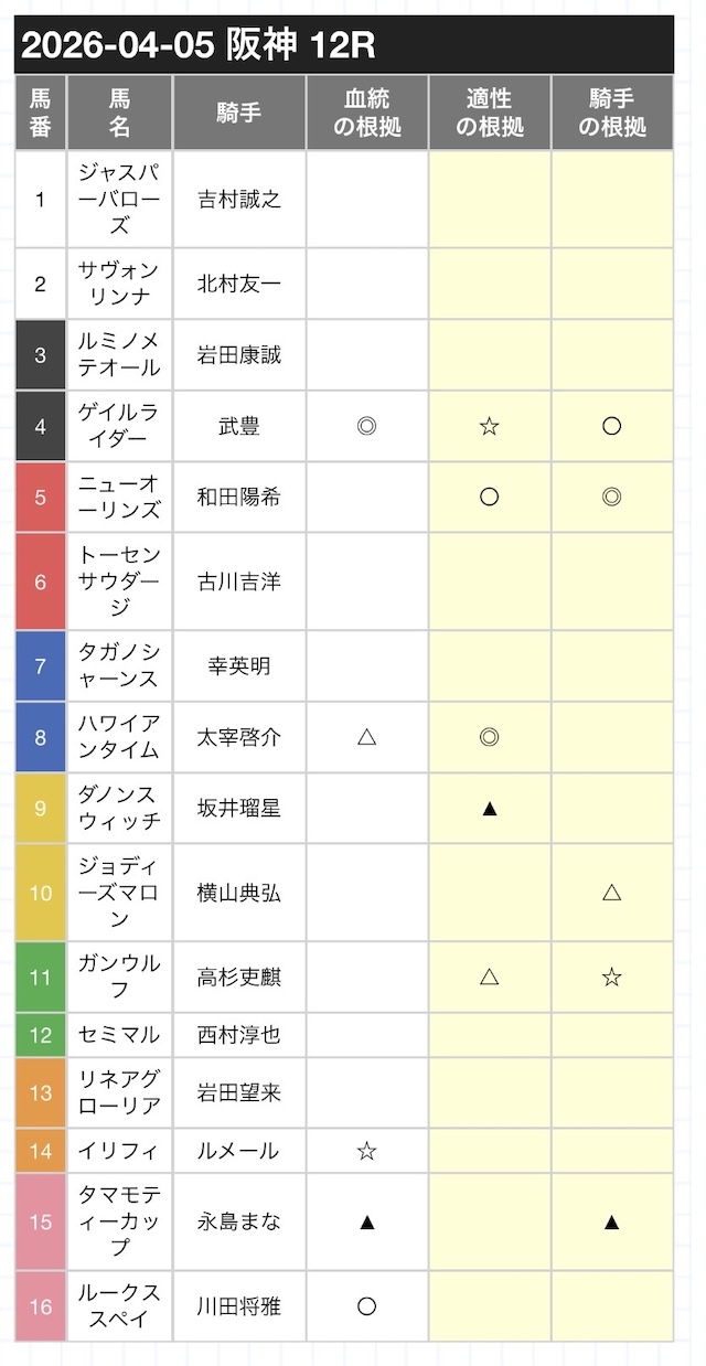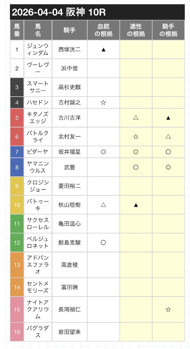 ただその中で7番人気①スマートシーカーを選んでいるので、数値以外の部分で好走する要因を見抜いているのか。