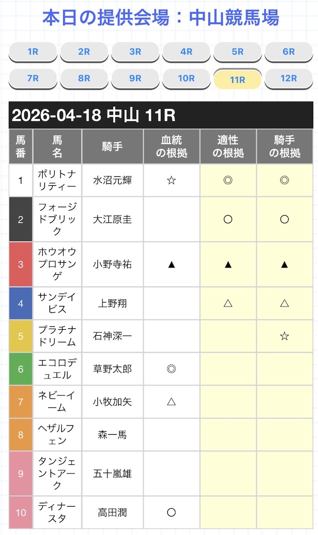まずは、実際に提供された無料予想の詳細をご覧ください。