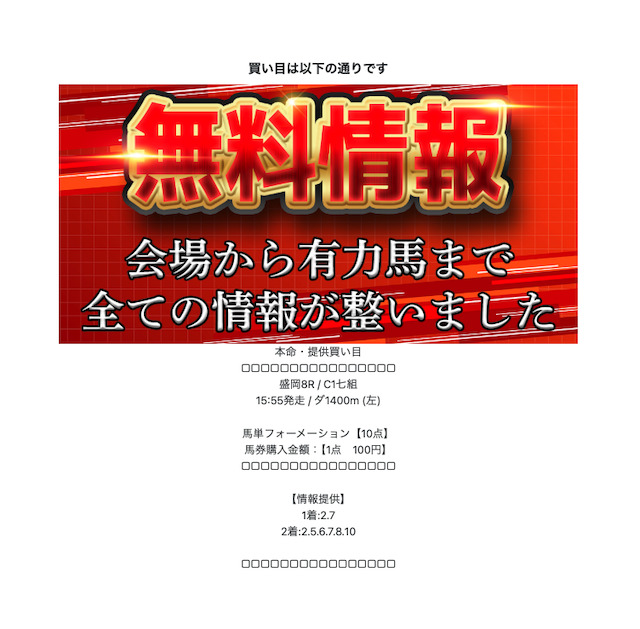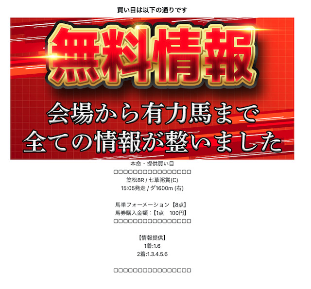 自分じゃとても当てられないようなレース展開でもちゃんと当ててくれる!こんなに当たりやすいサイトは初めてw