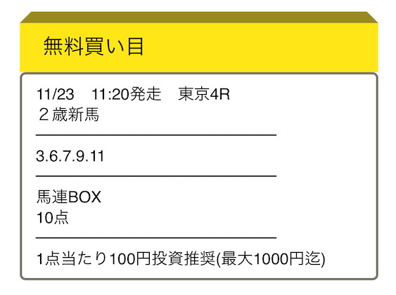 有料情報の入り口も入りやすい価格帯だし、結構しっかりした利益を出してくれる。意外とメインレースよりも未勝利戦とかの予想の提供が多いけど、個人的にはあまり知らない馬が出走するレースで丸のりするだけで稼げるから手っ取り早くてかなり重宝してる。
