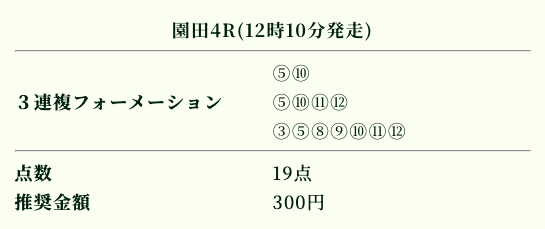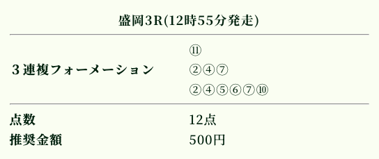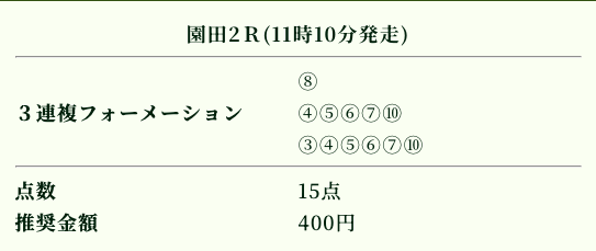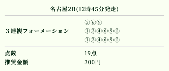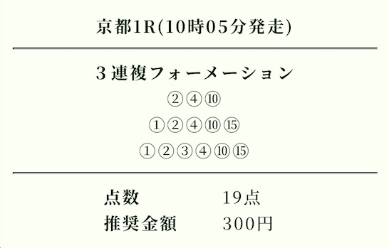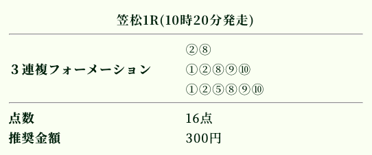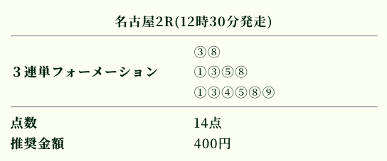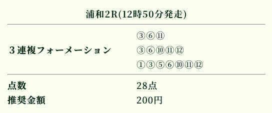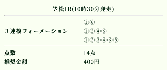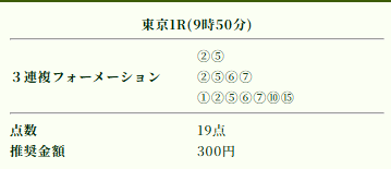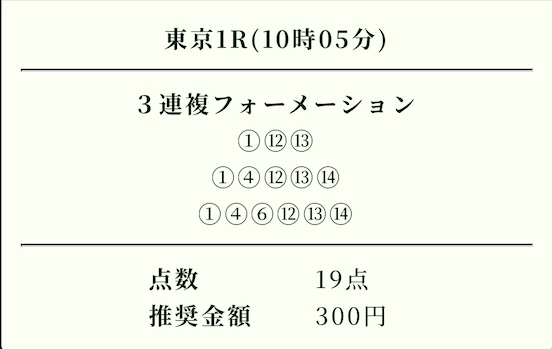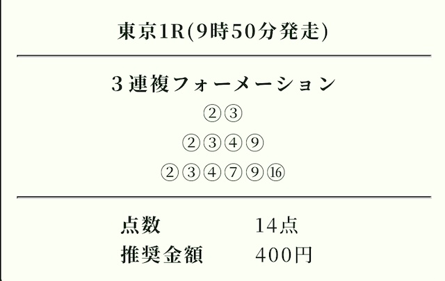 | 推奨投資金額 | 1点200円(計5,600円) |