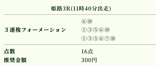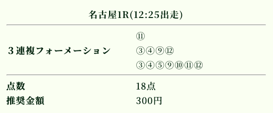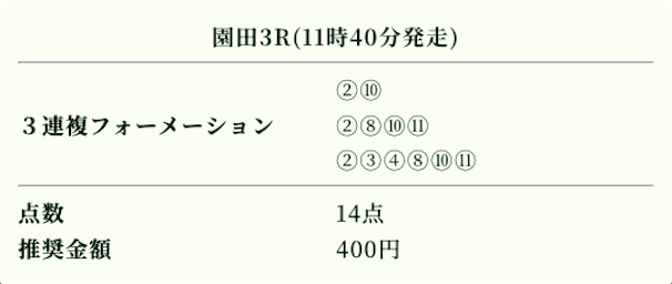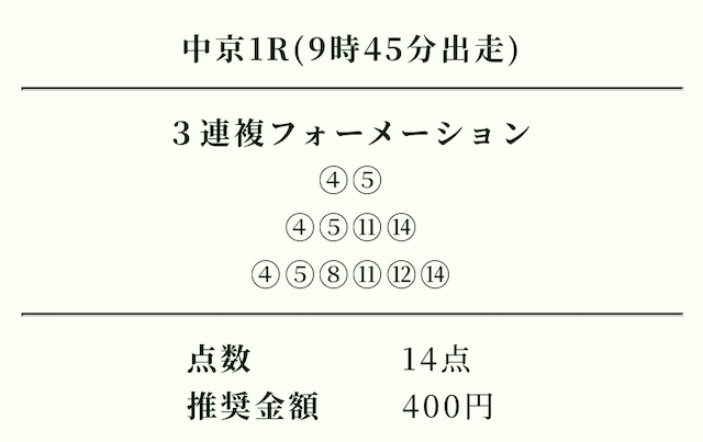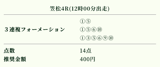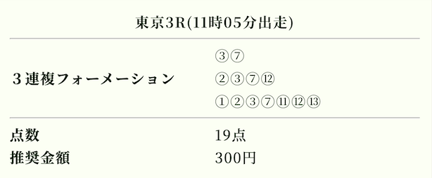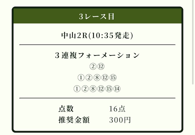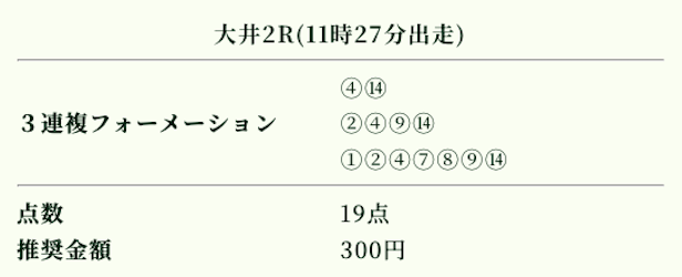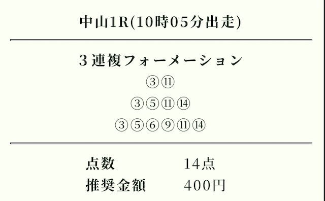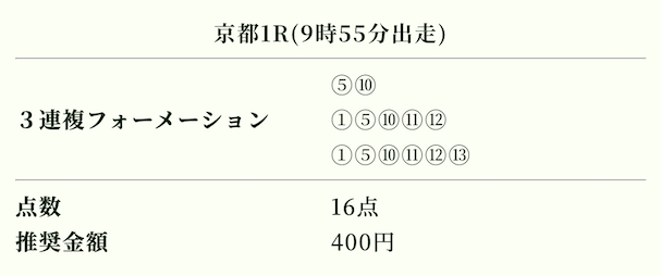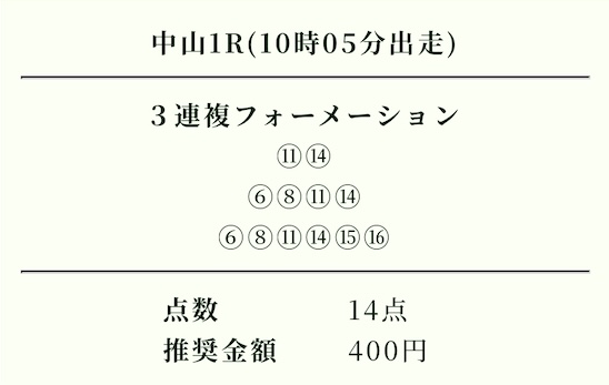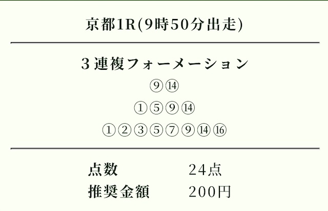 | 推奨投資金額 | 1点200円(計5,600円) |