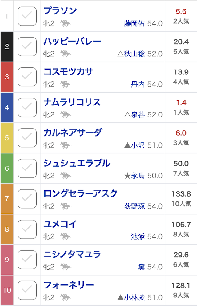 買い目を見るに、レープロは⑤カルネアサーダに期待を寄せているようです。