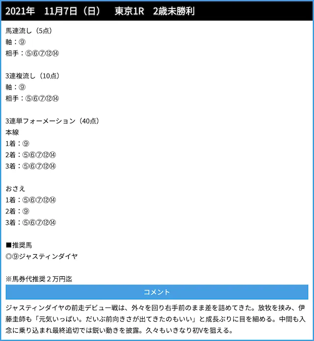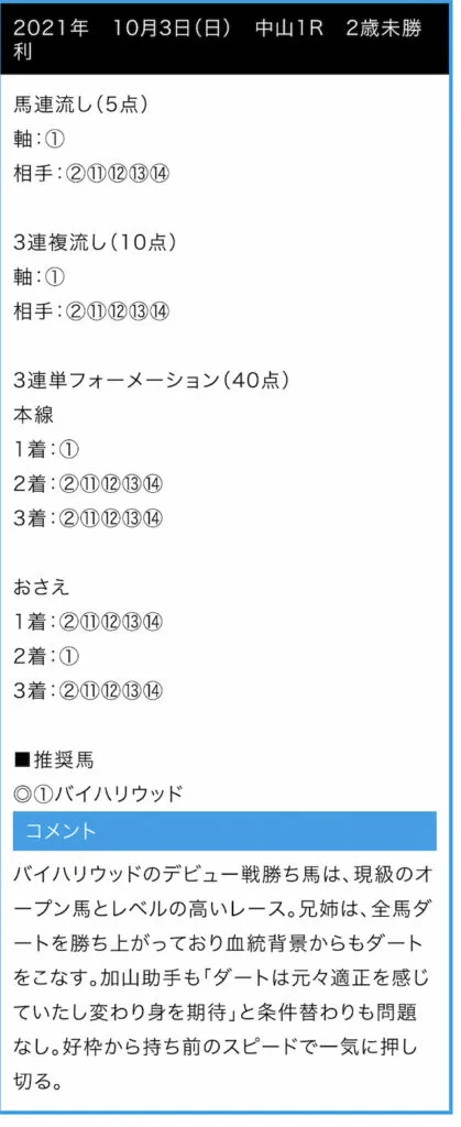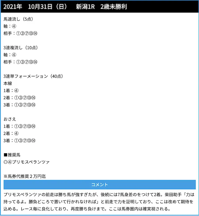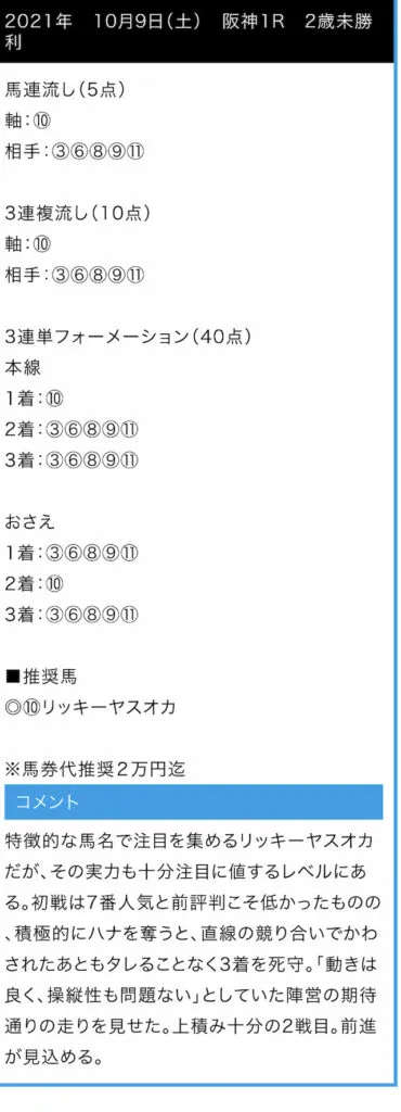 なんか無料コンテンツはパット見充実しているけど肝心の中身はほぼアテにならない。ピックップされてる馬がレースで活躍することもほぼない。ここまでくると悪徳サイトと疑わざるを得ない