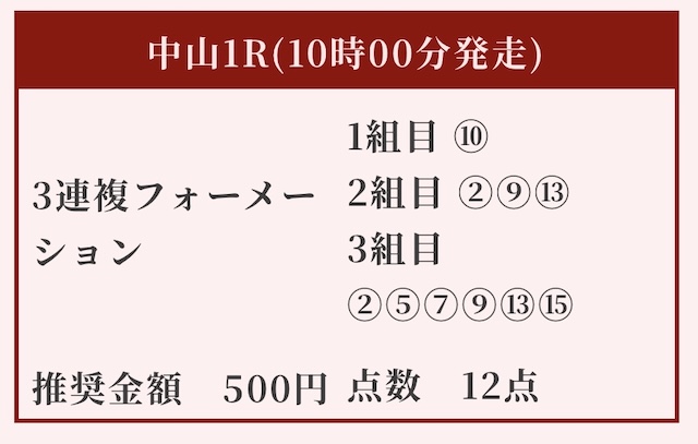 | 長澤馬券師プラン | 中央 | 15,000円 |