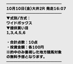 では、公開された買い目をご覧ください。