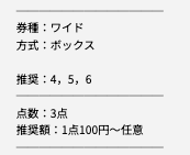 また3券種提供で、わりかし多くの方のニーズを満たせそうな買い目だなというのが初見の印象です。