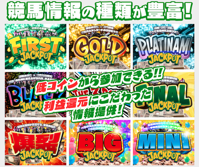 「FIRST JACKPOT」プランは6,000円で参加できるので、無料予想で手持ちに余裕ができたタイミングで参考にしてみてください。