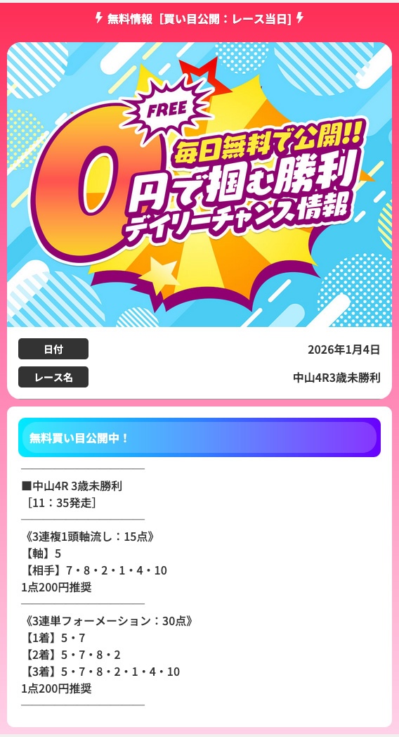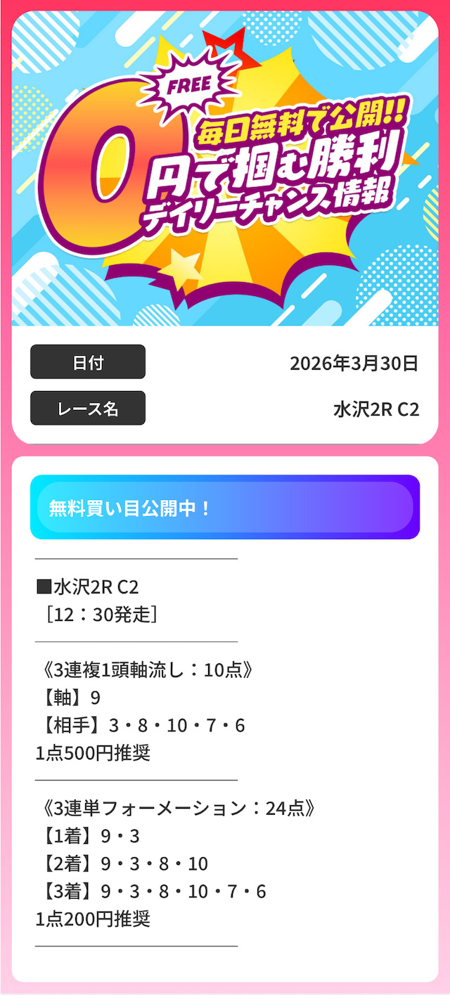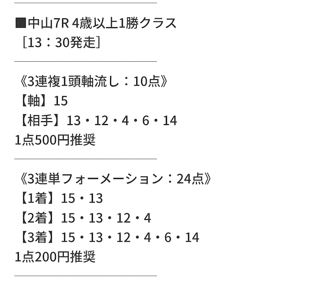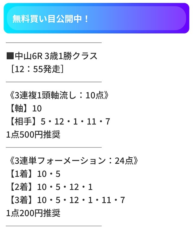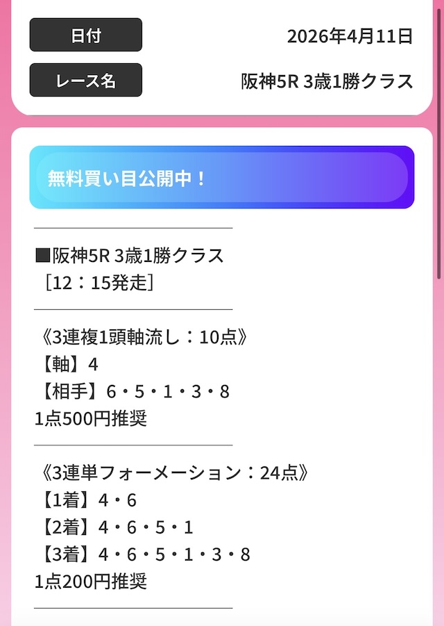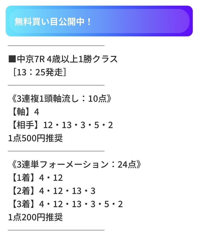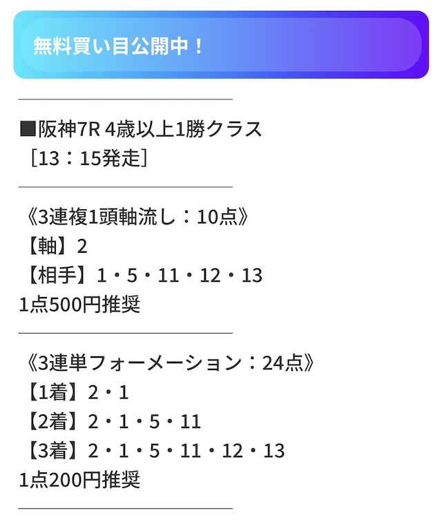 まずは、実際に提供された無料予想の詳細をご覧ください。