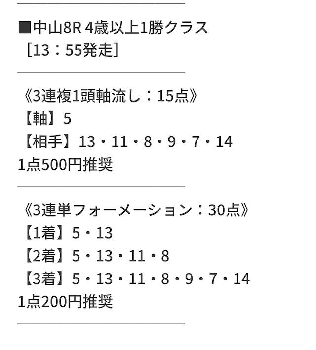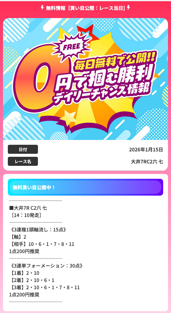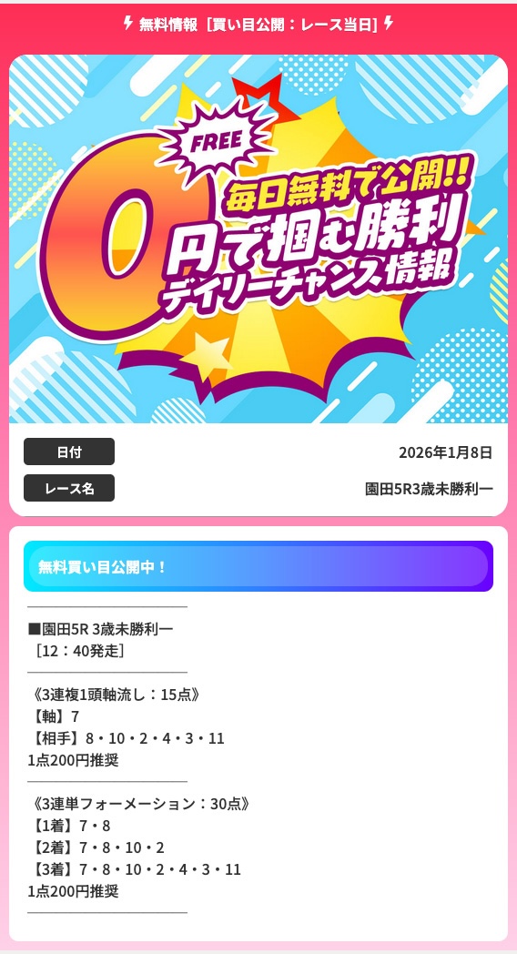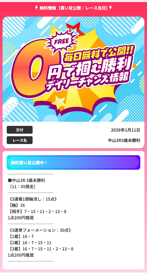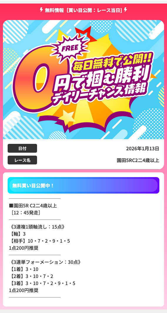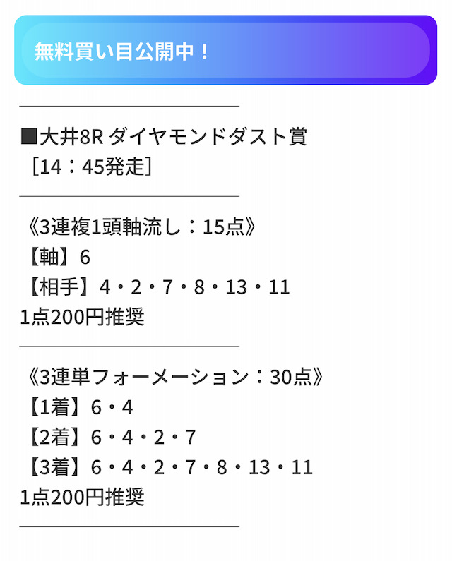 まずは、実際に提供された無料予想の詳細をご覧ください。