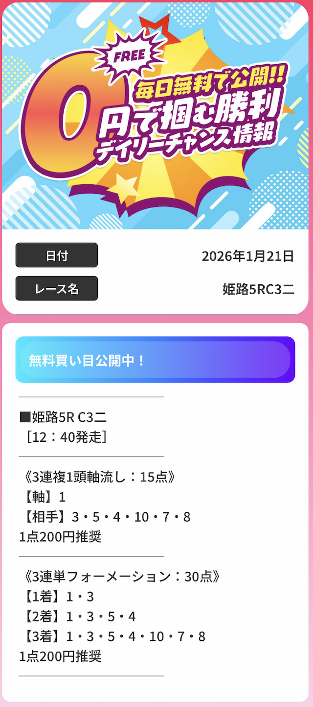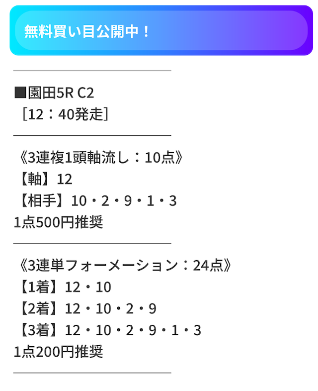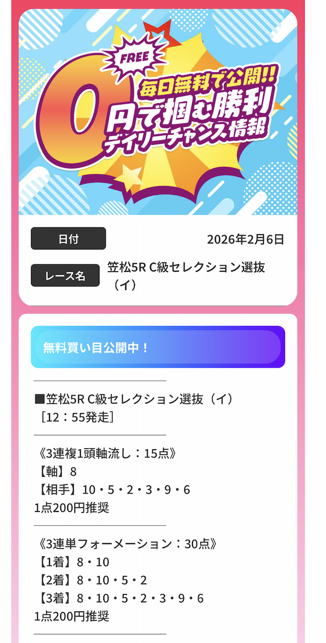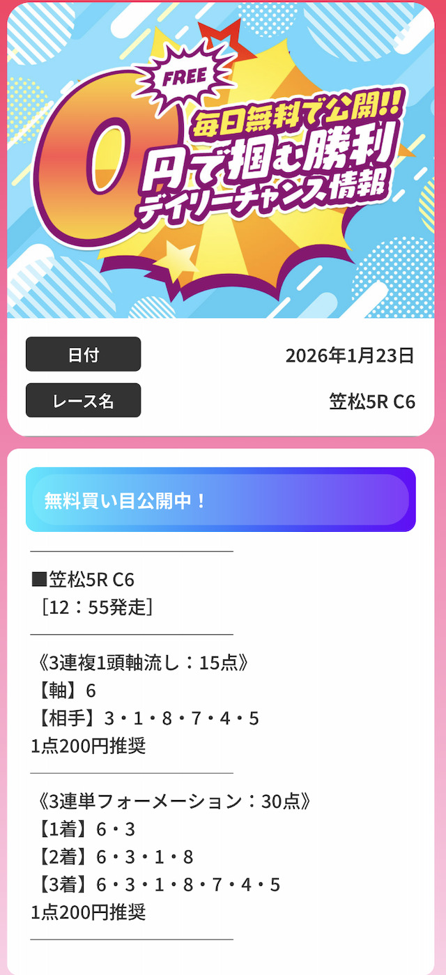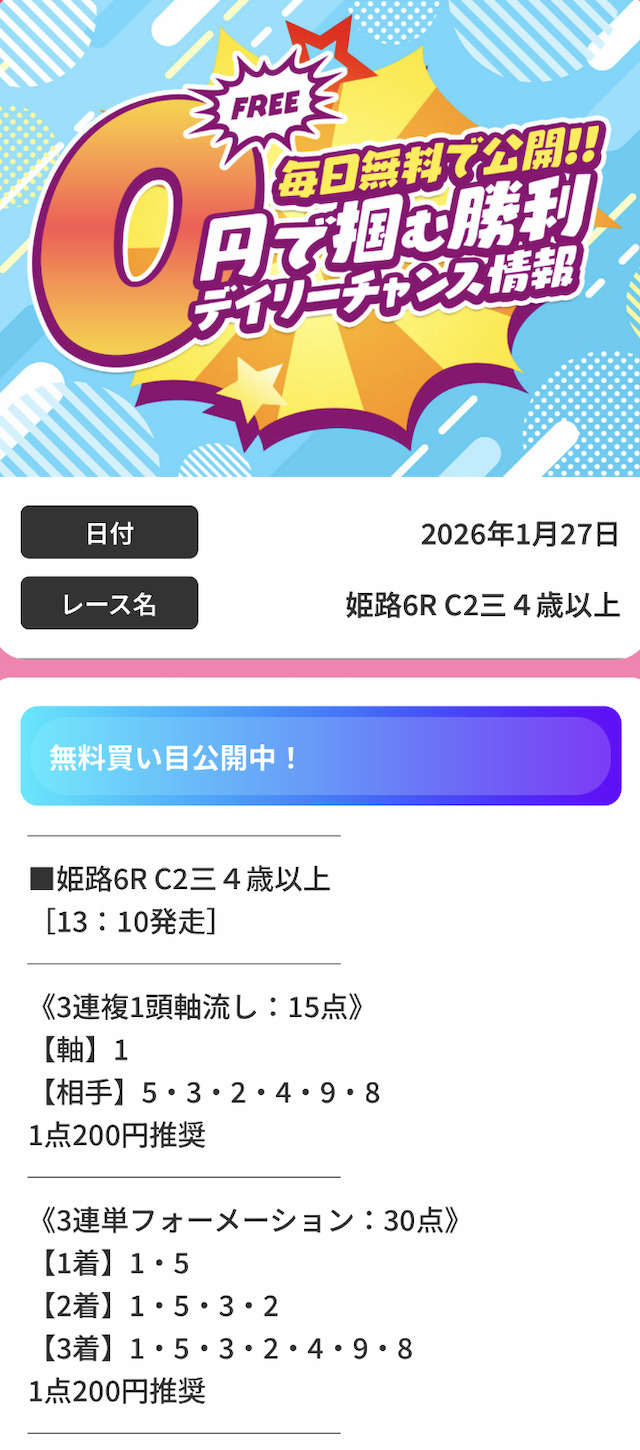 - 無料予想の公開時間であれば、予想を閲覧できる