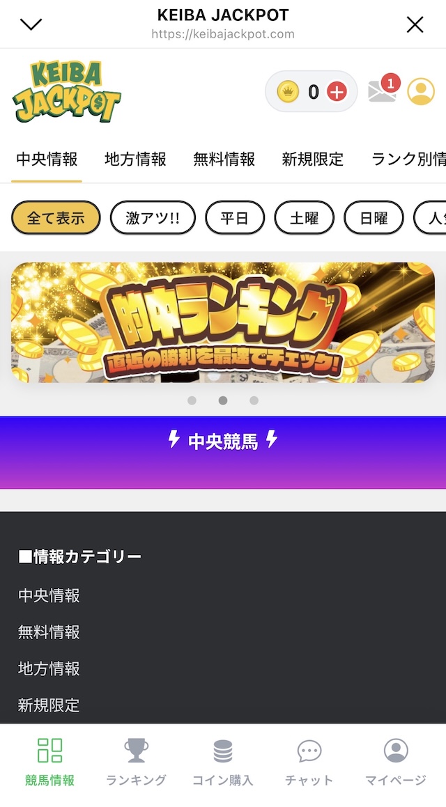 KEIBA JACKPOTの無料予想は、中央・地方競馬ともに予想を公開しています。