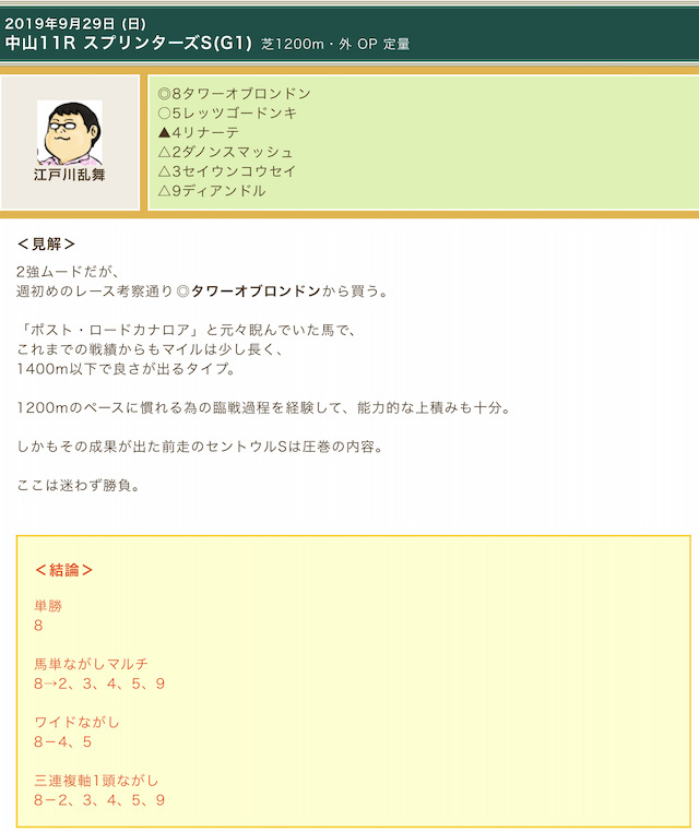 相手馬には人気上位の馬を多めに選出しているので、硬い決着がつくと予想しているのでしょう。