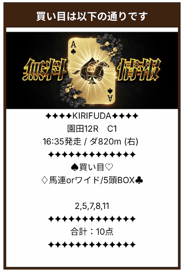 10年間競馬にのめり込んでいたけど、こんな高配当を出すサイトには初めて出会ったよ。 万券ラッシュモードってのが安くて的中率も高くてお気に入り。
