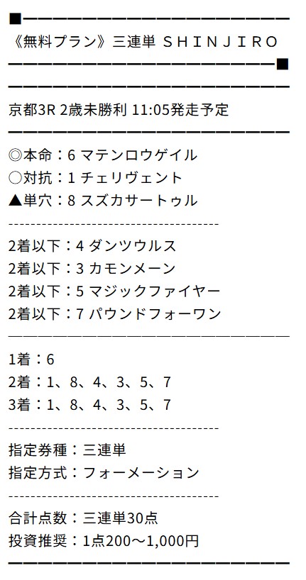 推奨投資金額が合計5,000~30,000円と、最高金額が高額なのが気になりますが、それだけ予想に自信があるのでしょうか。
