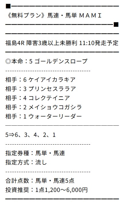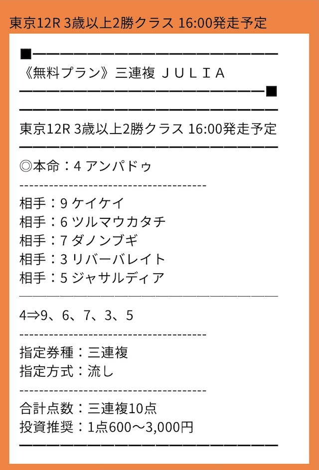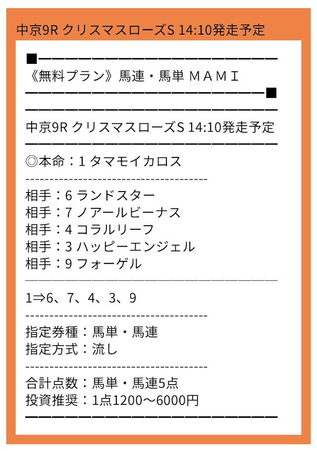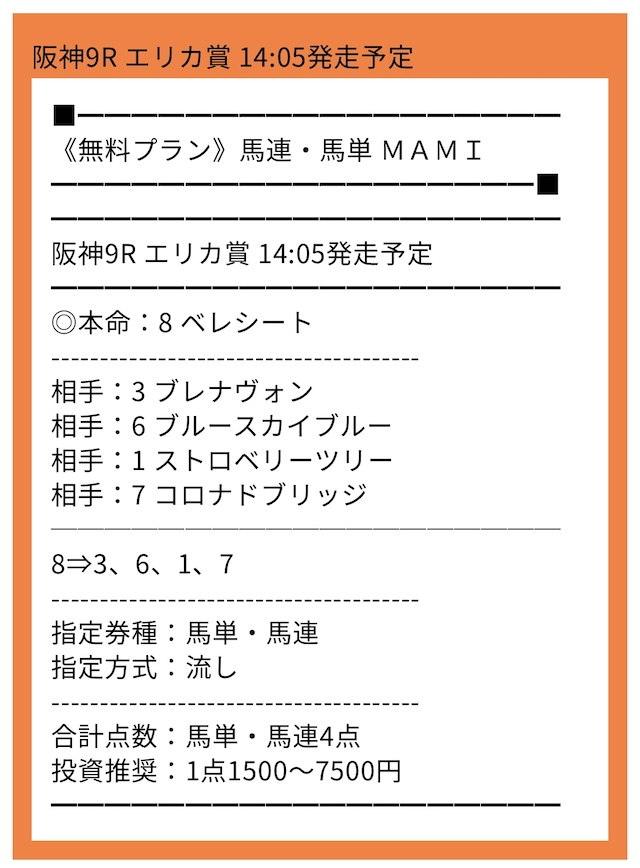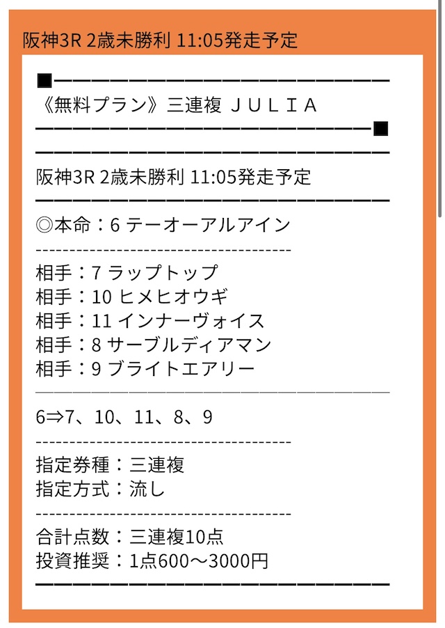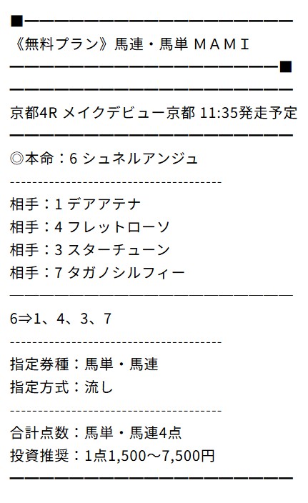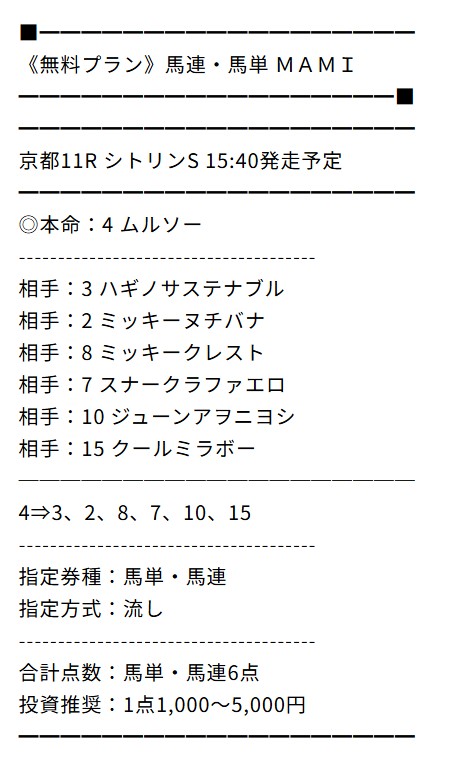 ※下記は公開される買い目の例
