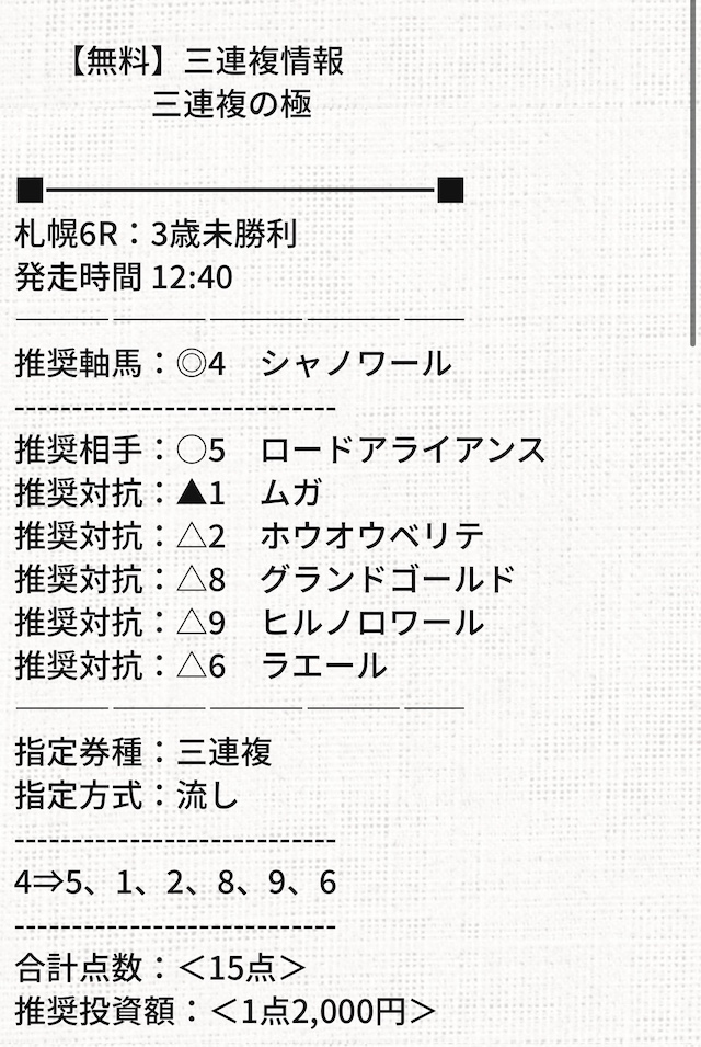 1点5,000円という強気な予想ですが、メリットの無料予想で利益はでるのでしょうか?