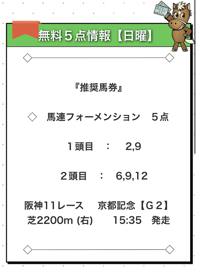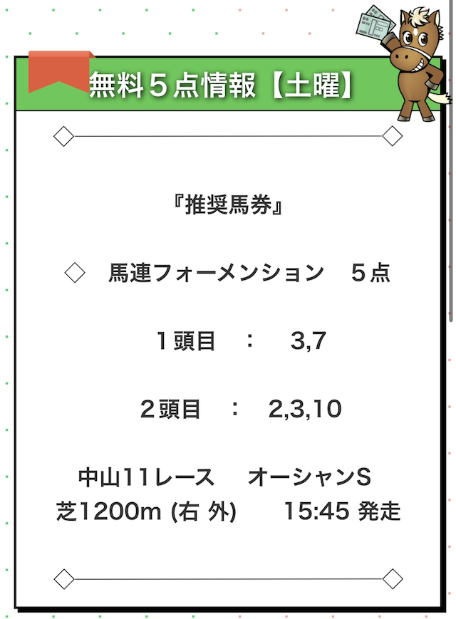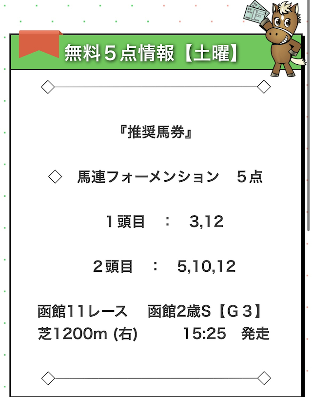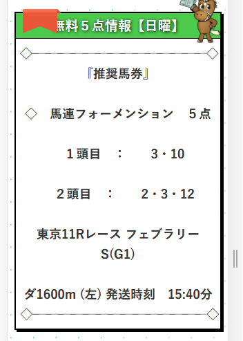めざまし万馬券は、毎週土日各日2レース分の予想を公開。