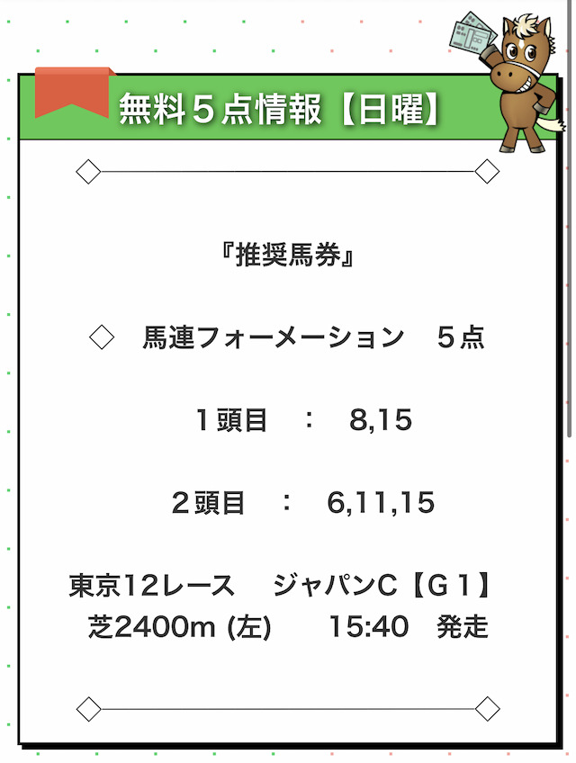 ここ3週連続的中してる!無料情報である程度資金が集まってきたから課金も検討。予想当たるといいなー。