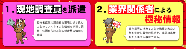 得た情報はめざまし万馬券が契約しているプロの馬券師が精査。