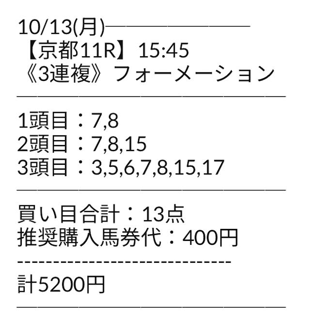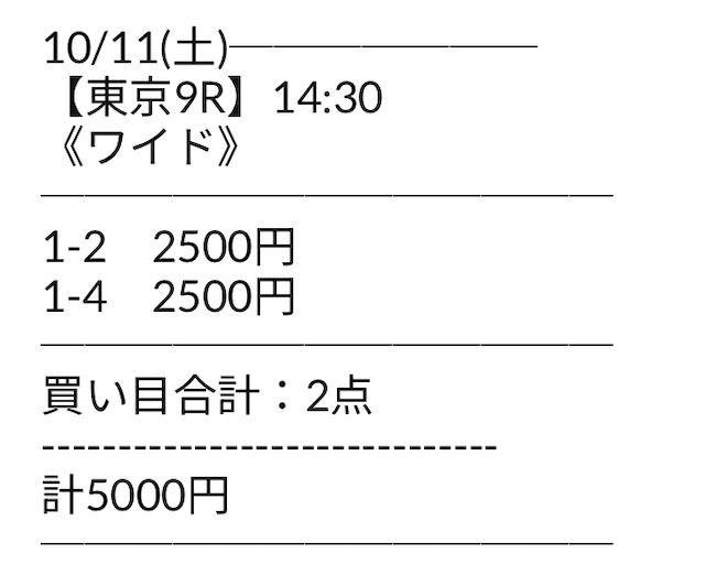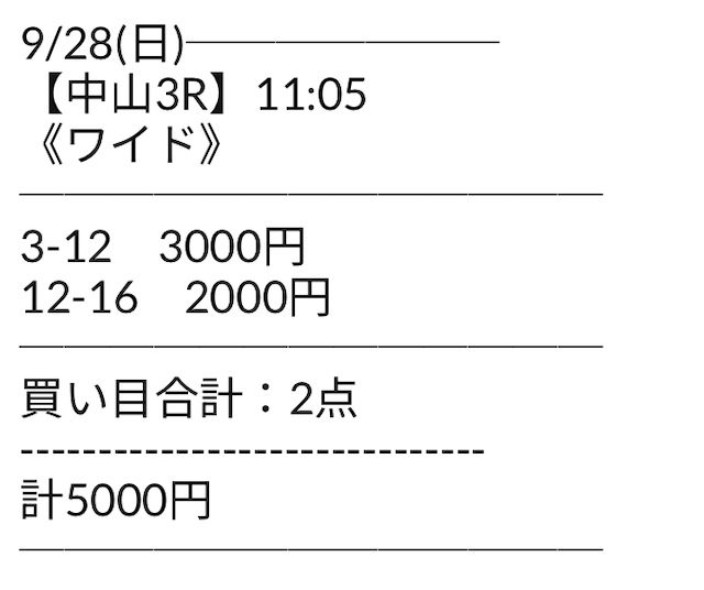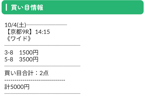 公開される券種は“ワイド(1~2点)”、”三連複(10~20点)”の2種類。