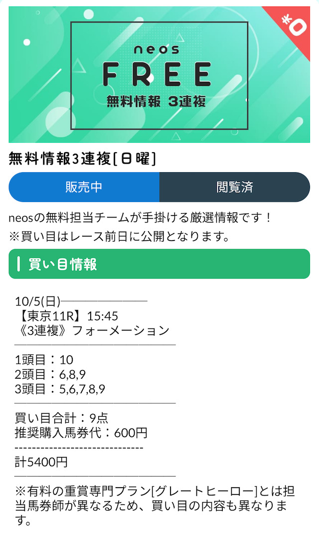ネオスの予想は無料予想・有料予想共に超高水準。