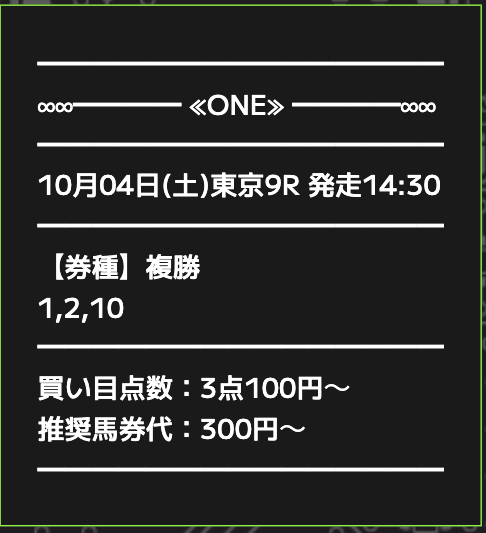 このサイト名もナンバーワン(ONE)という意味合いを持ってつけられたことは間違いなさそうですし、予想と提供するコンテンツに関して相当な自信があるということなのでしょう。