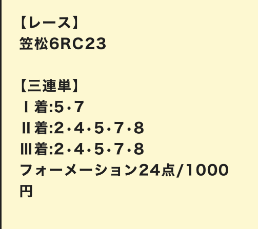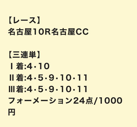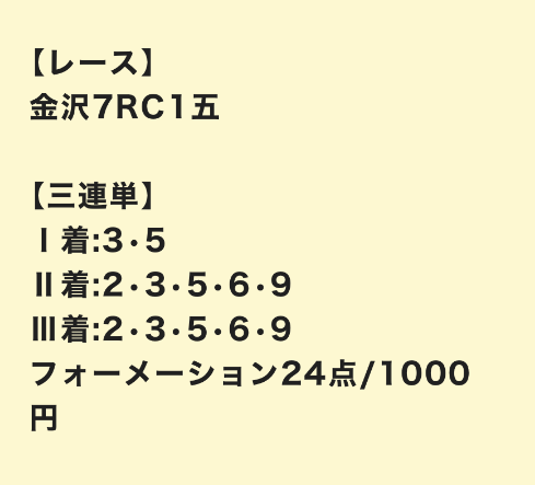 3連単が当たるのであればこれくらいは安いものですが、外す怖さも伴うギャンブラー好みの予想と言えますね。
