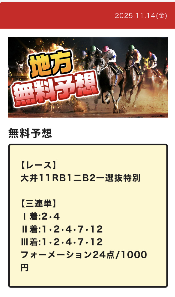 中でも、やはり無料予想の精度の高さとその公開頻度の多さは目に光るものを感じました。