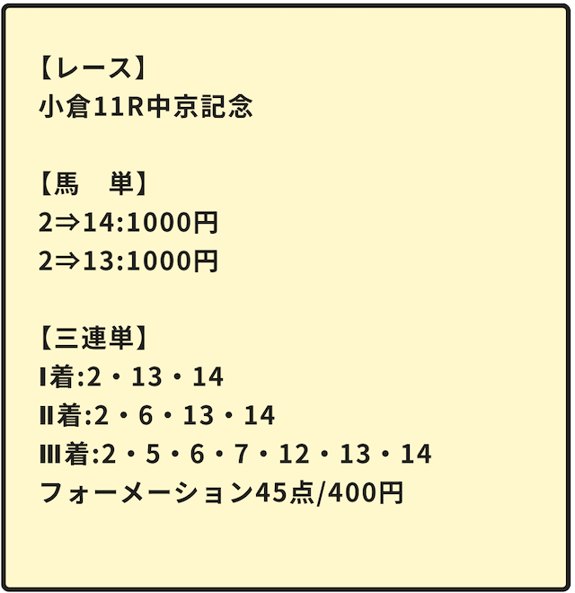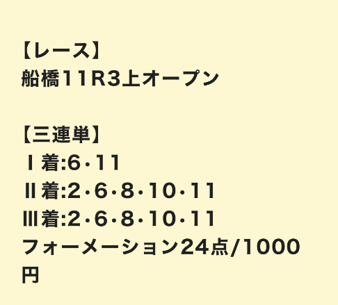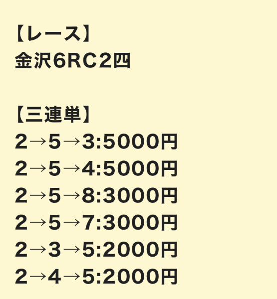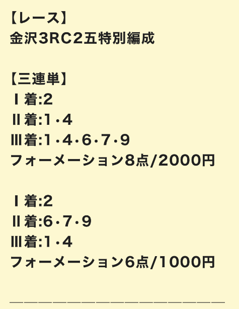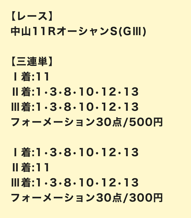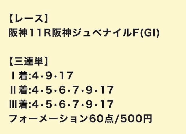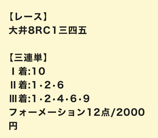 さっそく、公開された買い目を見ていきましょう。