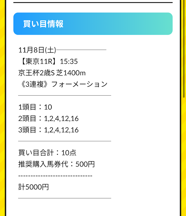 たった9点で1300倍を超える大荒れレースを難なく読み切るなど、情報料金を払ってでも参加する価値があると感じました。