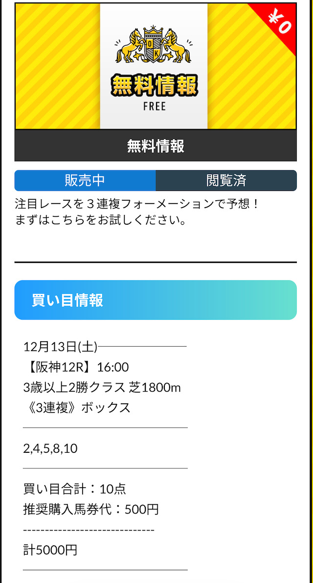 また、その次のステップである有料予想に関しても破壊力抜群。