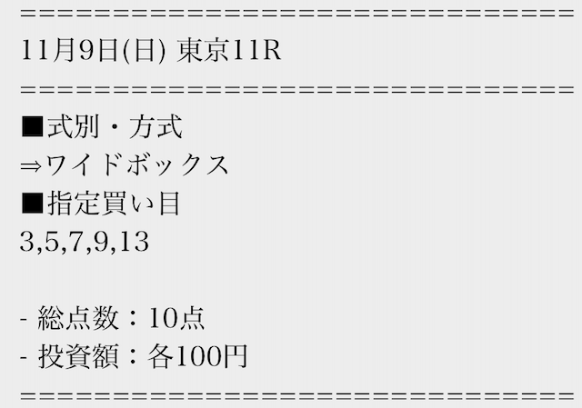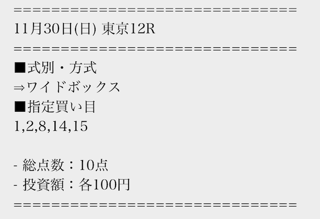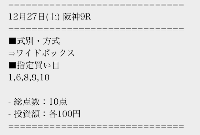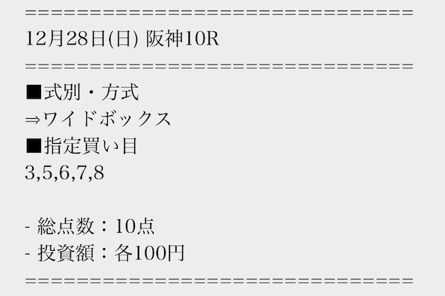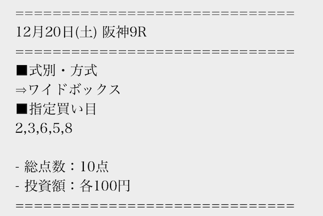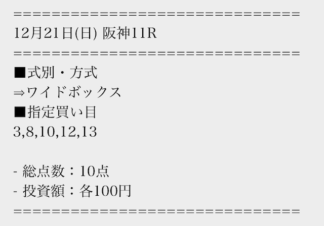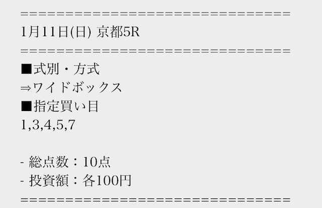 公開されたのは人気馬と中穴馬を組み合わせた買い目。
