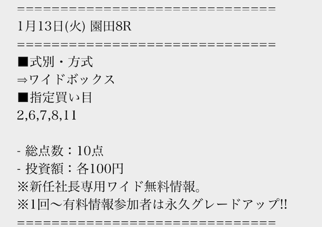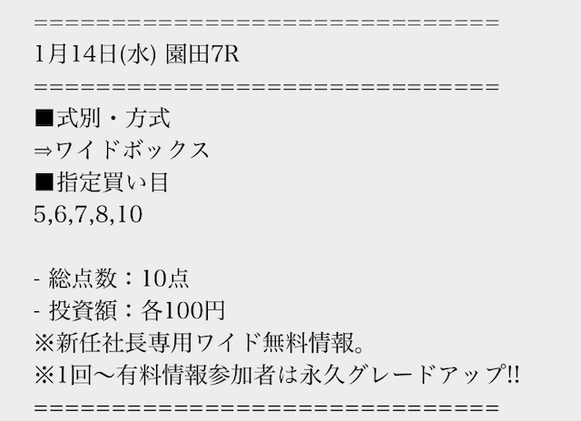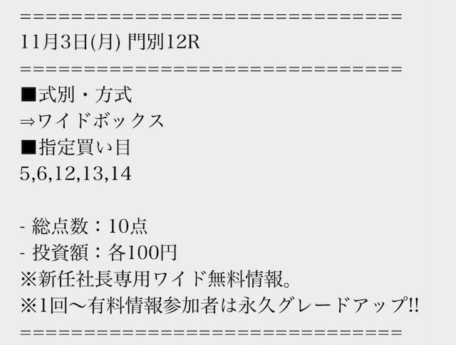 納得できる意見ではありますが、あくまで無料予想はお試しのようなコンテンツ。