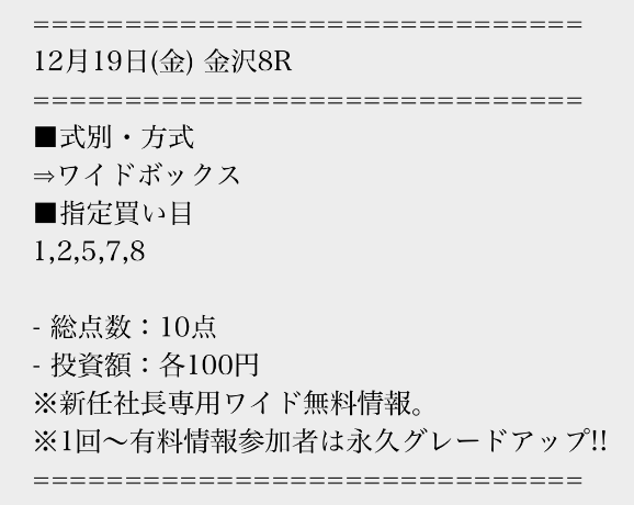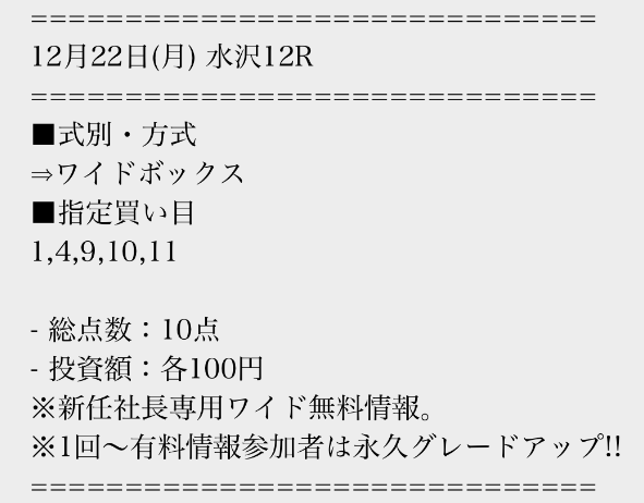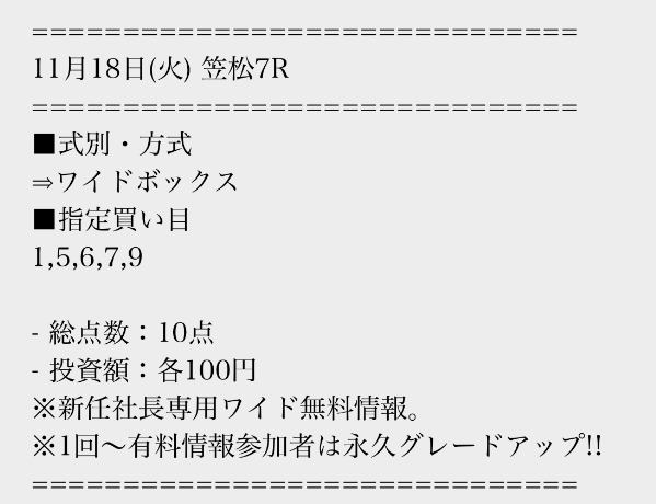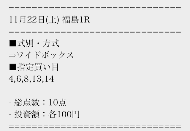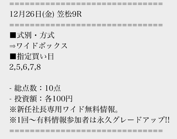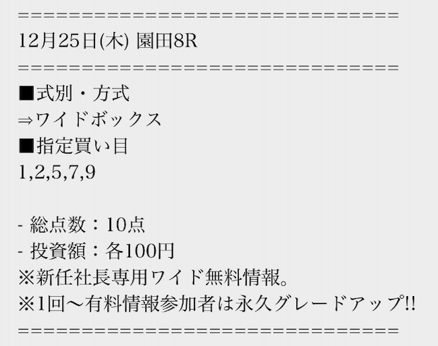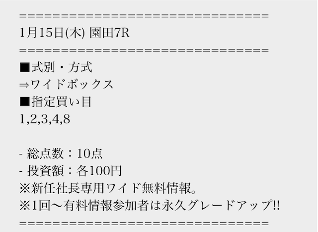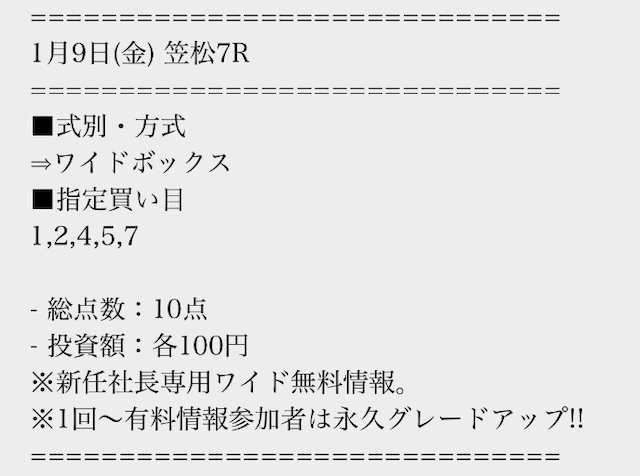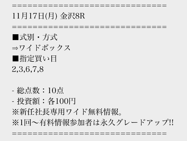 少しでも気になった方は、ぜひこの機会に予想を受け取り、実力を体感してみてください!