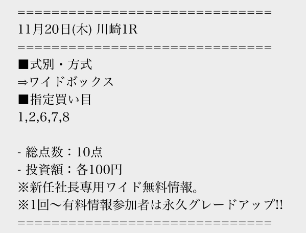 なんか良くわからんサイトだったけど、まじ稼げるっぽいw無料予想3連勝中です。一旦有料予想買ってくるわww