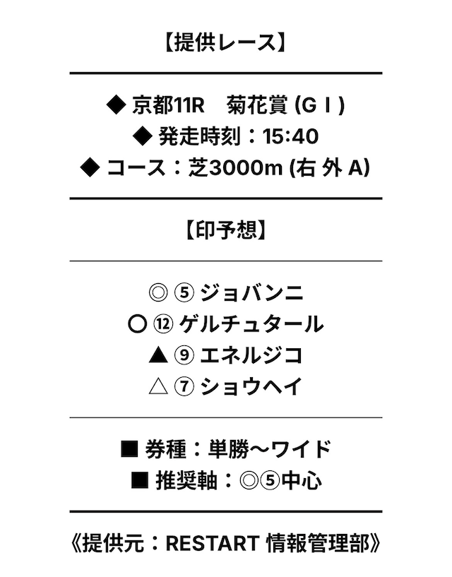 もともと地方競馬ばっかりだったから思うんだけど、 中央で的中させるの凄すぎ、リスタートは本物だわ 自分なんか中央予想してもかすりすらしない…