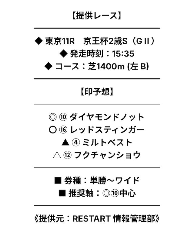 さて、基本情報の解説を終えたところで実際にリスタートの無料予想を検証していこうと思います!