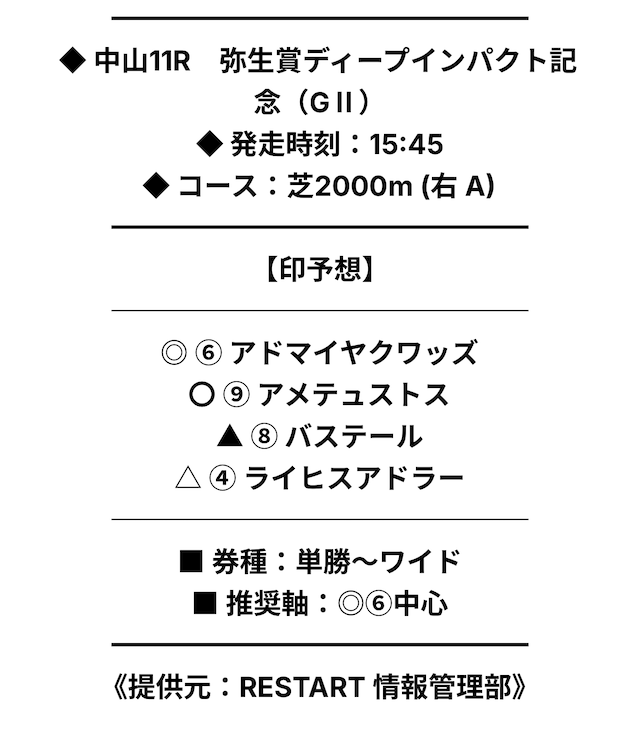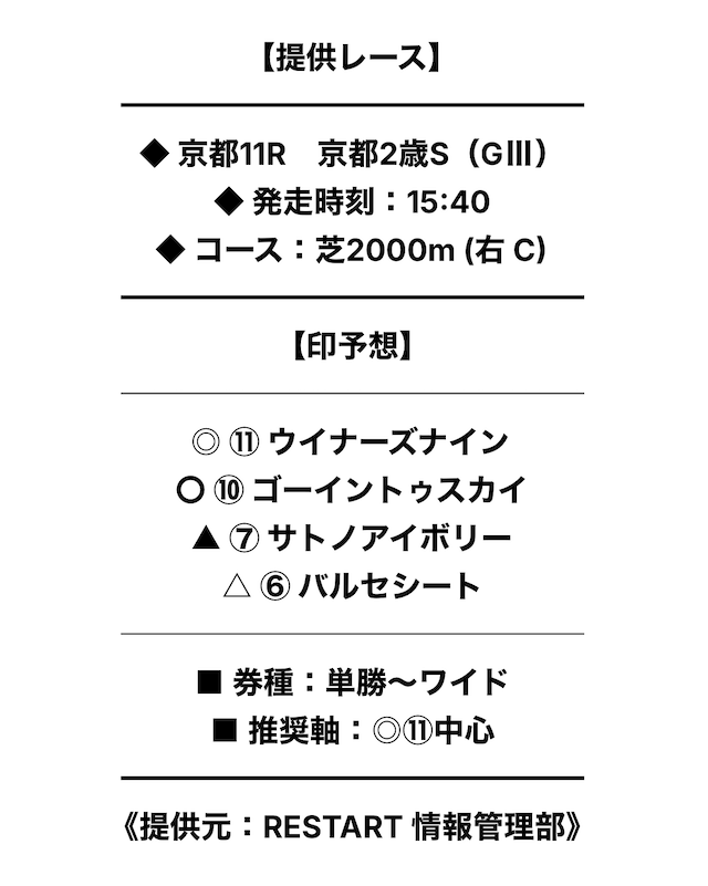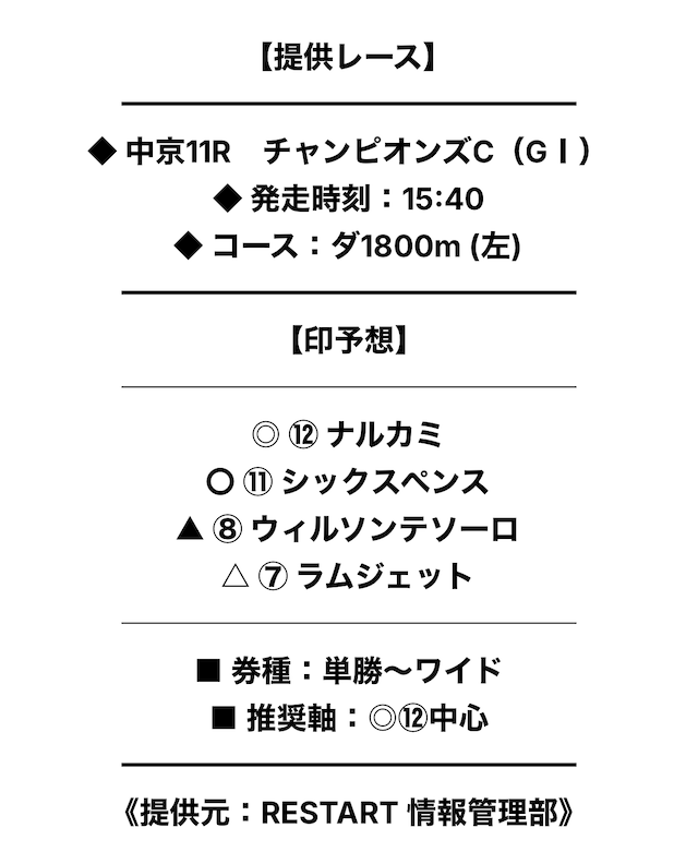 券種の指定はなく、リスタート側から「単勝〜ワイド」といった程度です。